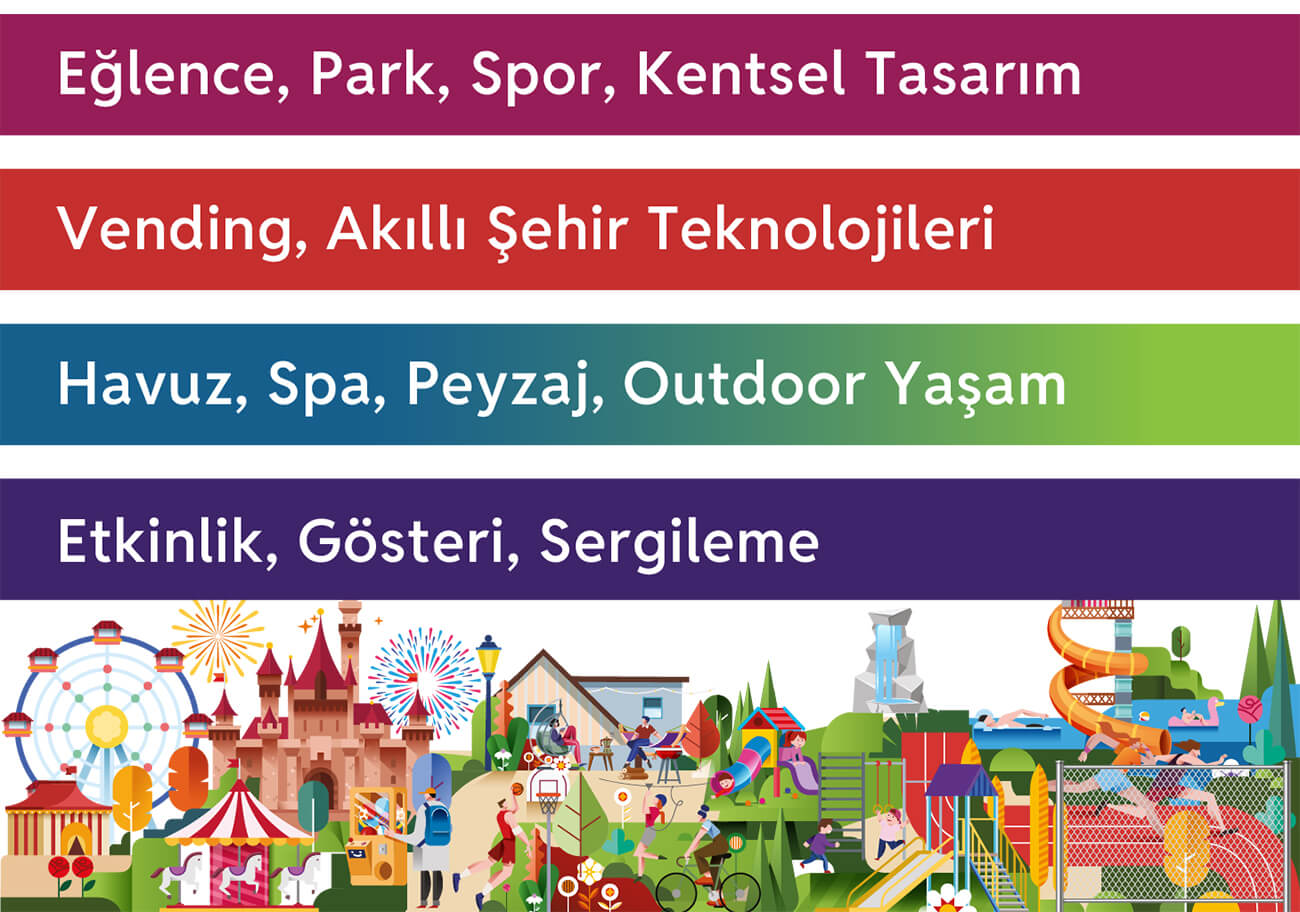 Eğlence, park, oyun, spor, rekreasyon, havuz – spa, peyzaj, açık alan tasarımı ve sosyal tesis sektörlerinde faaliyet gösteren firmalar için; uluslararası ticaret, yeni yatırım projeleri, kamu – özel sektör iş birlikleri ve şehir ölçekli uygulamalar üreten çok disiplinli bir buluşma noktasıdır.